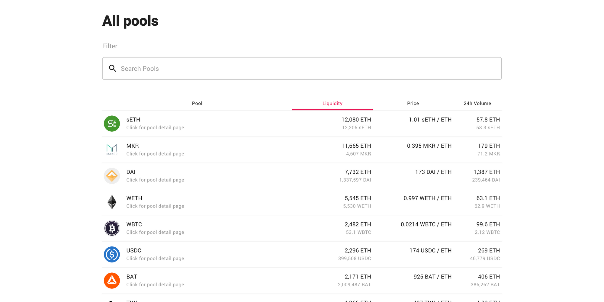 Compare and search all Uniswap pools, with liquidity, price and trading volume.