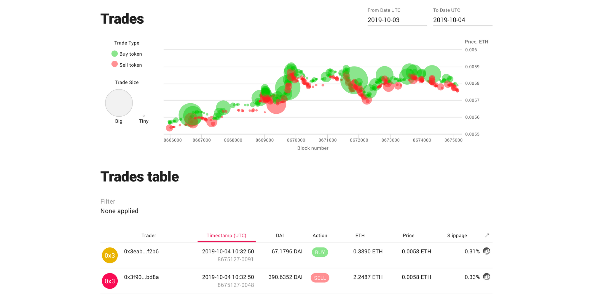 Review a complete and transparent trading history for each pool, including origination platform and other details about each trade.